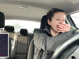 色情明星纳迪娅-福克斯在车内使用振动器射精